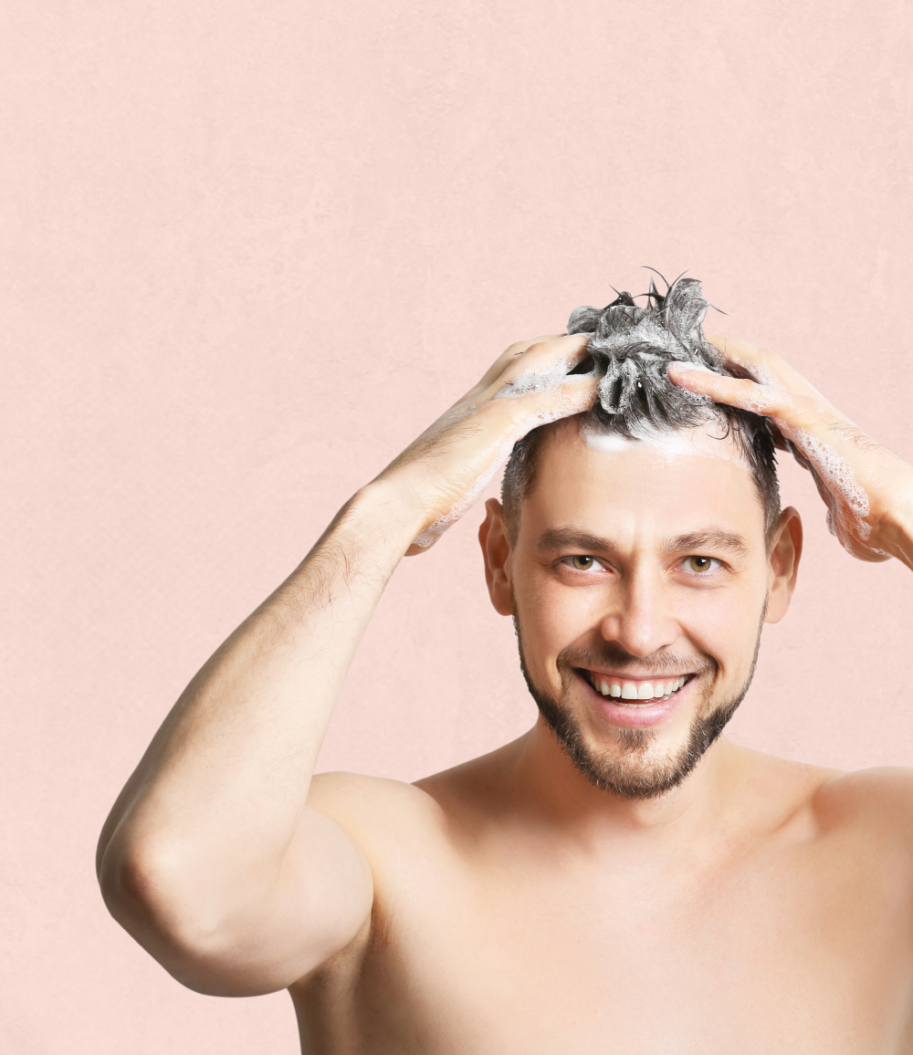 Unser mild reinigendes Pflegeshampoo beruhigt und pflegt die gereizte Kopfhaut.